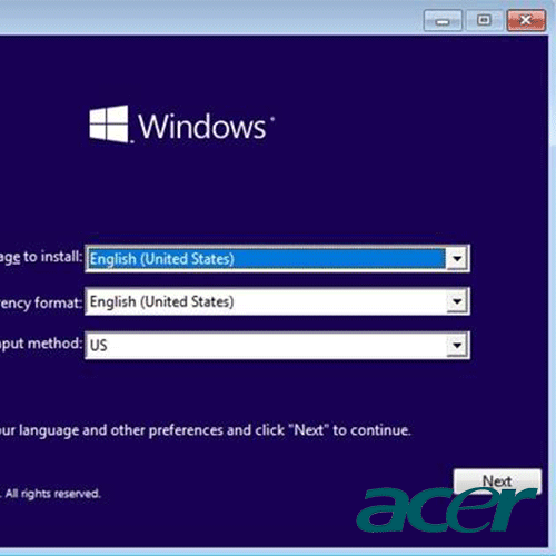 به این نکته دقت کنید که پس از این که ویندوز خاموش شود، دوباره لود خواهد شد به این دلیل که ما گزینه ریستارت را کلیک کرده ایم. بعد از این که ویندوز بالا آمد یک صفحه برای شما باز می شود که در قسمت پایین صفحه عبارتی وجود دارد که در آن گفته شده که برای ریبورت کردن ویندوز گزینه ای را کلیک کنید تا به شکل مستقیم وارد ویندوز شوید. این کلید ا در سیستم های مختلف متفاوت است به طور مثال در بعضی سیستم ها این کلید F9- بعضی دیگر Esc و یا F8 می باشد. حالا باید سی دی مورد نظرتان را برای بوت کردن انتخاب کنید. حالا شما وارد حساب ویندوز شده اید در صفحه اولی که نمایش داده می شود باید زمان و زبان را انتخاب کنید و بر روی گزینه NEXT کلیک کنید.